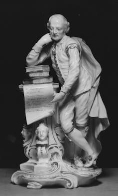これらの詩人のどれも、しかし、バーリントンの差止命令に応答しなかった、とシェイクスピアは、バーリントンの第三伯爵リチャード*ボイルは、デザインとピーター*シーメーカーズにウィリアム*ケントを依頼したときに、百年以上のために修道院で彼の場所を獲得することはありませんでした詩人のコーナーを飾るために、この等身大の白い大理石の彫像を彫刻する-足を交差立って立って、本の山に思慮深く傾いて–。,