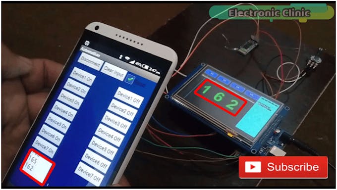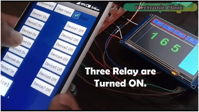 i den här handledningen lär du dig att styra en 5-tums TFT HMI-pekskärm trådlöst med hjälp av Bluetooth-modulen HC-05 eller HC-06 och en Android-mobiltelefon., Detta är ett dubbelt styrsystem, reläerna kan styras med hjälp av HMI pekskärmen och kan också styras med din android mobiltelefon.